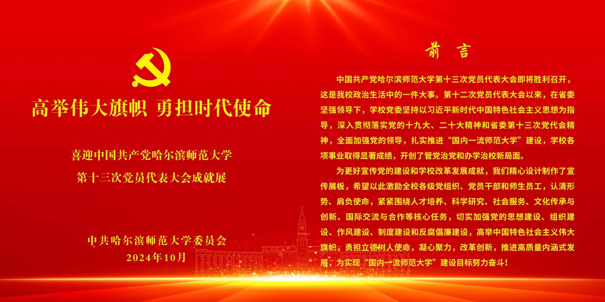中国共产党哈尔滨师范大学第十三次党员代表大会开幕
